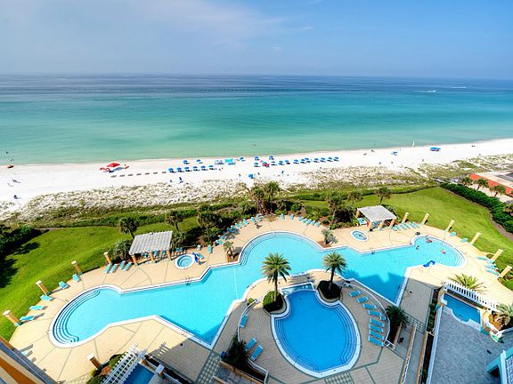 With this Gulf Front unit sitting on the worlds most beautiful beaches you can enjoy the best of luxury living. This beautiful 11th floor unit is three bedrooms plus a bunk room in the East building has everything you would want in a beach home. The complex features a lagoon style pool, Gulf Front fitness center, tropical landscaping, hot tubs and 450 feet of beautiful Gulf Front Beach. Just a short drive to Pier Park and the International Airport, En Soleil is conveniently located within minutes of world-class golf, sport fishing, unparalleled restaurants, boutiques and more. You'll love the elegance and privacy this stunning complex has to offer! This unit also has underground parking next to the elevator.