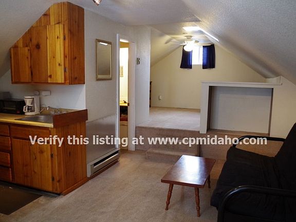 Nice quiet studio loft above a garage off Glenwood and State St, near the Walmart. Includes bed, couch, coffee table, chair, dressers and linens. Kitchenette with fridge, range, microwave, toaster oven , dishes, silverware, coffee maker. Extra storage. $400 Deposit. 12 month lease. NO PETS, NO SMOKING. Call 208-283-5663 to schedule a showing.