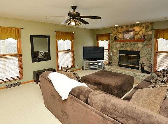 Simply awesome! Describes this 5 bed/4 bath gem offering 3 levels of living space. Country style kitchen with beautiful hardwood floors leads to a large deck with gazebo overlooking 1,226 acres of conservancy. Natural fireplace, first floor laundry & a supersized heated garage with 2nd level for added storage. Fresh landscaping including brand new retaining walls & a breathtaking resort like patio. Some new carpet, concrete & furnace. First floor laundry & steps from Lilly Lake.