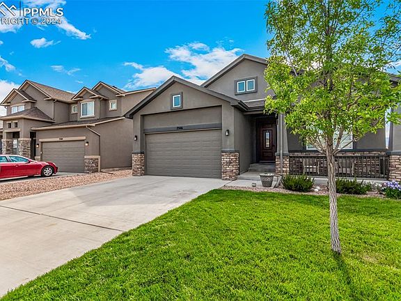 Prepare to be amazed! Check out this wonderful 5 bed, 3 bath residence now on the market! Featuring stunning, unobstructed 180-degree views, a home water softener plus reverse osmosis filter at the kitchen sink, a charming facade w/stone accents, a lush front yard, a 3-car tandem garage w/an extended driveway, and a welcoming porch! Near by walking trails, an easy 10-minute commute into Fort Carson, and a 10-minute, no-traffic commute to COS Airport make this location ideal. Inside you will find a spacious open floor plan w/vaulted ceilings, elegant wood-look flooring, a cozy fireplace, and warm palette throughout. The chef's kitchen is comprised of wood cabinetry w/crown moulding, granite counters, mosaic tile backsplash, recessed & pendant lighting, stainless steel appliances, and an island complete w/a breakfast bar. End your busy day in the primary bedroom, boasting a walk-in closet and a lavish ensuite w/dual sinks. The walk-out basement showcases a spacious bonus room, perfect for an entertainment center! Also including a sizeable backyard w/a covered patio and a lovely deck, this home is sure to be the one for you! Act now before it's gone!