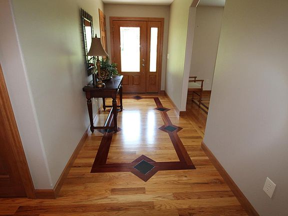 Don't let this ranch home fool you! The minute you walk in the front door you will be wowed by all the designer wood floors in the home. The pictures don't do it justice! There is no carpet in the home it is wood or tile thru out. Formal dining room is set up for cable so it could be a living room. The kitchen area is set for a hearth room but it could be the dining area. This home has versatility! Kitchen is custom Maple cabinets with nice breakfast bar with stools that stay. Custom built hutch stays with the home also. Off the kitchen you find a sunroom/office and a huge laundry room with sink and plenty of cabinets. Split bedroom plan, master has walk in closet and tiled walk in shower. Family room down with full kitchen, full bath that offers another tiled shower.