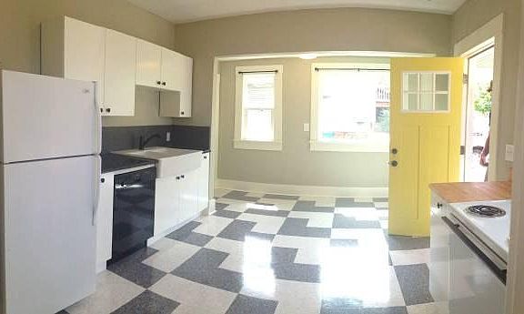 The Unit: Beautifully updated 2 bedroom main floor unit in vintage Portland Foursquare duplex. Every surface in this 1,100 square foot unit has been updated, including a brand-new kitchen featuring granite countertops, dishwasher, oversized farm-style sink, and tons of storage space for all your kitchen gadgets. You'll also have a bonus area off the kitchen that is perfect for an office space or breakfast nook. The unit has all new double-pane vinyl windows that allow in tons of natural light and great views of nearby Mt. Tabor. Vintage fir floors in the living, dining and bedrooms, plus brand new designer custom flooring in the kitchen and bath add to the unit's character. The unit also features an enormous living room and dining room with lots of natural light and vintage built-ins. The master bedroom is quite large and has an oversize walk-in closet. The second bedroom is amply sized with generous closet space. You'll have shared access to the yard and raised garden beds for your summertime harvest, as well as your very own porch. You'll also have storage and a washer & dryer in the basement. One off-street parking space is provided for this unit, as well as ample street parking around the duplex. Transportation: You'll be close to the 19 & 20 bus routes, and just a few minutes from I-84 & I-205 entrances. The duplex is on a city bike boulevard and there are numerous connecting bike routes nearby. Nearby Amenities: Only blocks to the thriving Montavilla Farmer's Market (seasonal) and all the shops, bars and restaurants that make this area one of the most desirable in Portland. Walking-distance coffee shops include Starbucks and the Bipartisan Cafe. There are 31 restaurants within a 15 minute walk. Mt. Tabor Park is just a few blocks away, and there are numerous other parks and recreation areas nearby. The Details: Available April 1st. $1850 per month rent with a one year lease. Application fee is $40 per adult. Tenant pays all utilities.