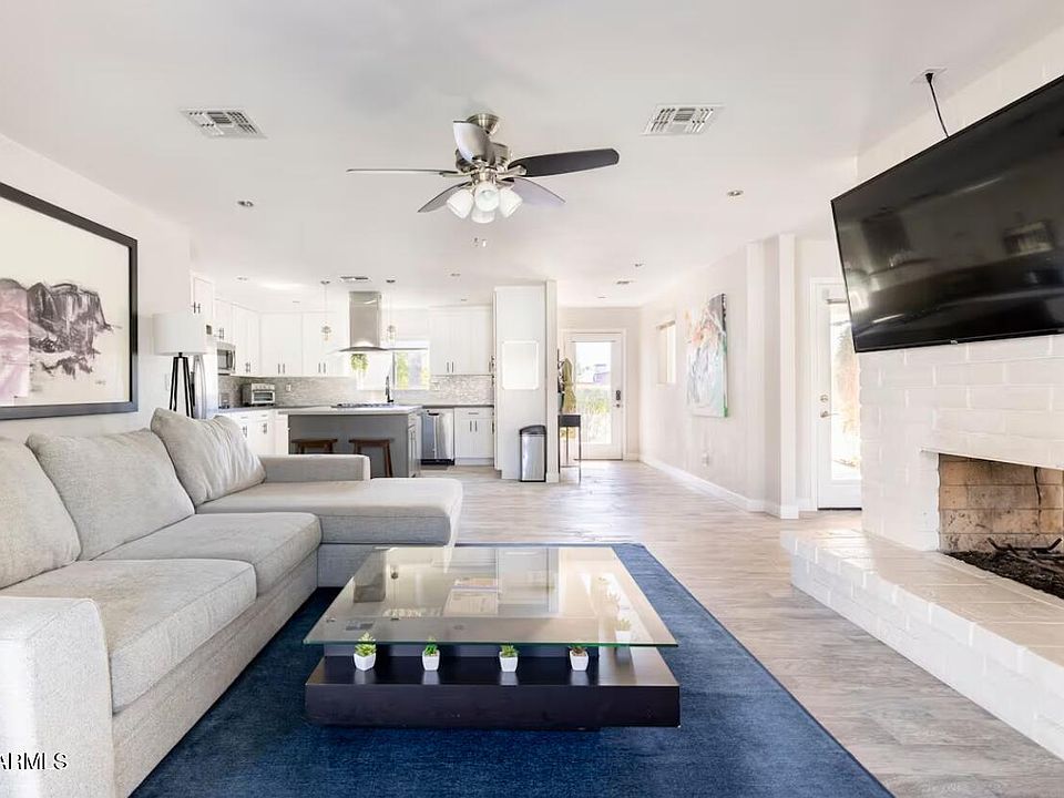Check out this beautifully remodeled home with a NEW roof that blends Scottsdale's charm with the fresh feel of a new build. The spacious family and kitchen area features a double-sided fireplace that opens up to the dining room, creating a perfect space for both relaxing and entertaining. The kitchen is a dream for anyone who loves to cook, with a large island and a gas cooktop. This home has 3 bedrooms, 2 bathrooms, with 2 bonus flex rooms that would be great as an office or extra space for whatever you need.