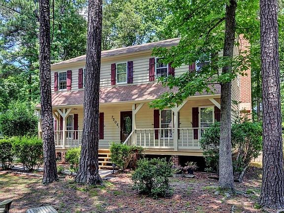 Charming 4 BR Colonial situated in a cul-de-sac in the popular Creekwood subdivision. A 36' covered front porch greets you before entering this lovely home. The hardwood floors have just been refinished and new carpet installed in the master bedroom. Everything is freshly painted inside! There is new flooring in the eat-in kitchen which boasts tile countertops and a new microwave. The family room has a beamed ceiling and brick fireplace. A bright sunny Florida room on the rear has a wraparound deck overlooking the private backyard. Upstairs are found 4 bedrooms with hardwood floors except the new carpet in the master. Ceiling fans adorn each of the bedrooms. The huge back yard is fully fenced for the pets and kids and there is a detached storage shed for your tools. The neighborhood community center offers pool, tennis and playground. Make sure to add this one to your list!
