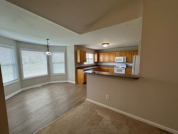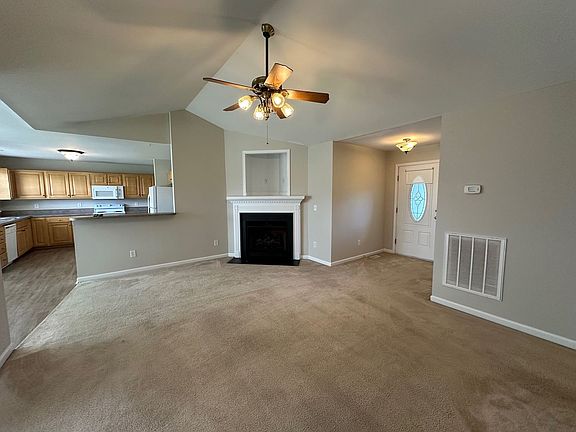 Nice 3-bedroom 2 bath house in Burlington for rent exclusively through Burlington Rentals. Spacious living room open to dining area and kitchen. Kitchen has refrigerator, electric range, dishwasher, microwave, pantry, lots of cabinets and counter space. Main bedroom has carpet, private bathroom with double sinks and large walk-in closet. Laundry room, 2-car garage, deck on back and spacious yard.