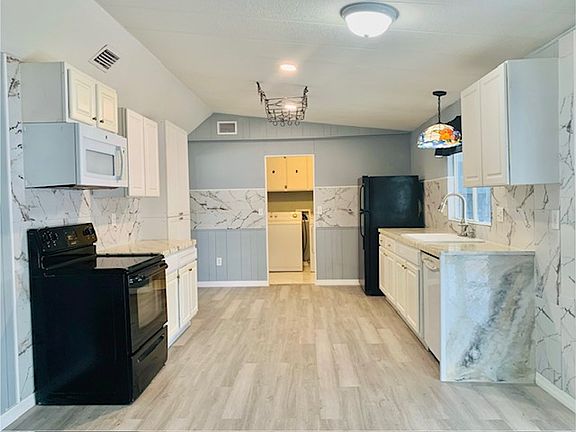 CURRENTLY PENDING Home Sweet Home! This newly updated double wide, CORNER LOT, mobile home features 3-bedroom, 2-bathroom in a comfortable and modern living space. Sit back and relax in the spacious living room that boasts natural light. The kitchen has recently been restyled and provides ample cabinet and counter space. The master bedroom features a walk-in closet, and the oversized master bathroom boasts a spacious shower and double vanity. Both the second and third bedroom features a generous walk-in closet! Laundry room comes with equiped with washer and dryer for you to take advantage of. There is new laminate flooring through out the home as well as fresh exterior & interior paint. Relax outside in the newly screened-in front porch. There are 2 driveways to accomadate your vehicles and visitors. You'll have a huge storage unit also available to use for your needs. Take advantage of the new CENTRAL Air just installed! NO AGE RESTRICTIONS, all ages welcome! Everything you need is within easy reach, including diverse shopping options, essential supermarkets, medical facilities, and a broad range of entertainment choices. Don't miss out on this incredible opportunity! TOTAL Deposit due upon signing Lease agreement. Minimum 1 year lease.