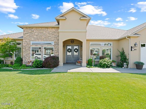 Just 1 mile from Apple Tree Golf Course, this stunning 2014 custom-built Elite Home in West Valley's Hannon Heights offers magazine-worthy style. Nearly 3,000 square feet on one level, the open floor plan features 10' ceilings, 8' doors, and thoughtful architectural touches throughout. A welcoming double-door entry with hardwood floors sets the tone. The formal living room and formal dining room feature wainscoting and updated lighting. The impressive great room boasts 14' ceilings, detailed crown molding, a gas fireplace, and large windows that allow natural light to shine. The chef's kitchen includes dual islands, granite slab countertops, stainless steel appliances, a 5-burner gas range, breakfast nook, pantry, and patio access. The private primary suite offers a walk-in tile shower, jetted tub, dual vanities, and walk-in closet. A second mini suite and two additional bedrooms with a shared full bath are thoughtfully placed on the opposite side of the home. Enjoy sunsets from the large covered patio plus the convenience of a 3-car garage. This home blends luxury, comfort, and timeless style.