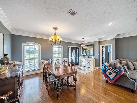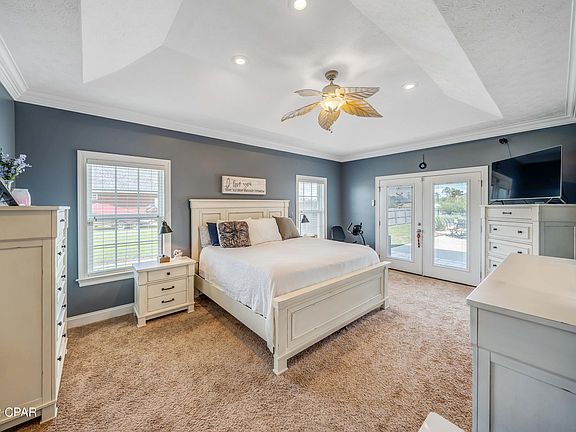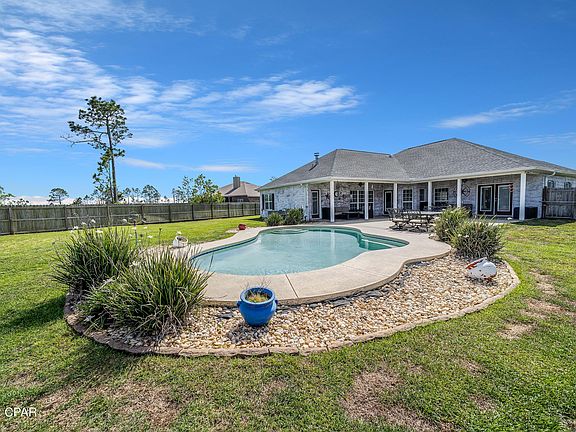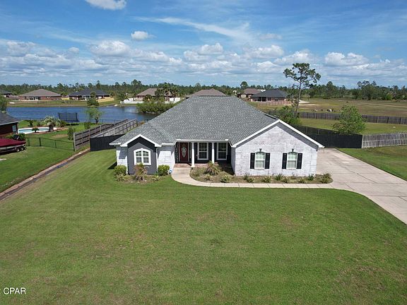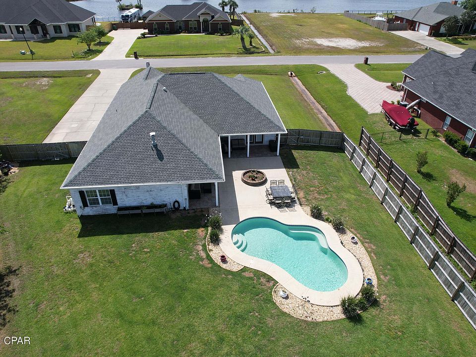 Huge lot! Inground pool facing the small lake where jet skis are permitted! 4 Bedrooms and 3 baths with 3 exits to the back yard. Fire pit- Custom cabinetry- kitchen island with breakfast bar- Fire place- Double garage!- Room for a motor home in back yard behind the gate! 2 living areas! Separate dining area! Fenced yard!