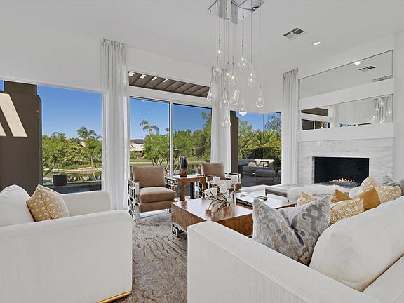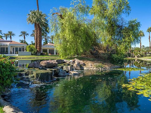 One of a kind REMODELED custom home behind the gates at Desert Horizons Country Club in Indian Wells. Professionally designed in every aspect, this 4 bedroom, four 1/2 bath home has expansive entertainment areas with two fireplaces and views galore with surrounding waterfalls and ponds. Every room is meticulously designed with intentional furniture, accessories and art. This top to bottom remodel includes the gourmet kitchen with Calcutta gold marble waterfall island and stainless steel appliances. All bathrooms were redone with quartzite tops, floor to ceiling tile showers and new plumbing fixtures. The high end lighting throughout stands out in each room, illuminating each space beautifully! Peaceful and serene setting at the end of a cul de sac with wrap around Desert Horizons water features. Epoxy two car garage with golf cart space. Other upgrades include newer HVAC, water heater and central vaccum. This home is beyond move-in ready and no need to preview. Just stunning and a rare treasure indeed! City of Indian Wells resident discounted benefits as well.