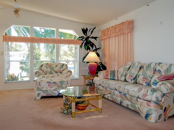 Don't miss this FURNISHED 1994 3 BEDROOM 3 BATHROOM home that sits on ALMOST 1/2 acre. 1892 square feet of heated living space, CATHEDRAL CEILINGS, LARGE EAT-IN KITCHEN with a beautiful wrap around window to enjoy the morning sunshine and your coffee! NEW ROOF IN 2006, NEW A/C IN 2012. 12x16 utility room. Located in popular 55+ community where you own your own land. Community amenities include tennis, heated pool, horseshoes, bocce, community center, pickle ball and more. Located near major medical facilities, shopping and restaurants.