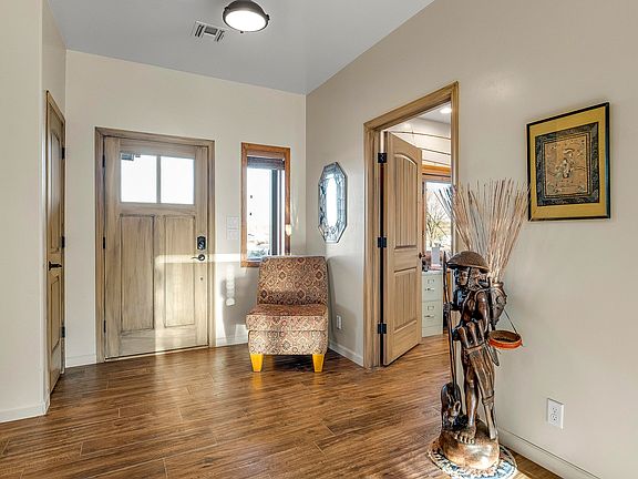 Nestled on 3.28 acres, this custom-built home exudes meticulous craftsmanship. It was originally crafted by the builder for himself, with stunning unobstructed mountain views. Upon entry, the allure of knotty pine ceilings and porcelain tile floors set the tone for an airy, welcoming ambiance. Livingroom features a wood-burning fireplace, and breathtaking views through huge picture windows. Attached to the living room, the kitchen/dining area flaunts granite countertops, stainless steel appliances, and knotty alder cabinets. Split floorplan. Primary suite has Peak views and luxurious heated bathroom floor. An ADU above the garage provides flexibility for extended family or rental income. NO HOA. Parcel permits equestrian amenities, complemented by a spacious detached shop with RV access.