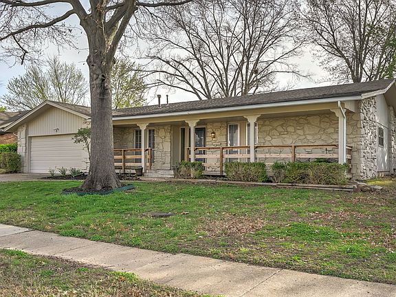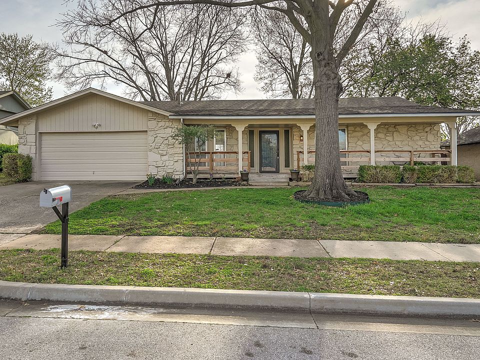 Spacious 1 Story home. Welcoming front patio and large back yard with mature trees; plenty of shade! Eat-in kitchen and formal dining. 2 Living Rooms - One can be used as office or playroom. Main living with fireplace and sliding glass doors facing large backyard. Spacious laundry room with lots of cabinet space. Attached 2 car garage. Heat and air vent in garage. Great price in a great location!