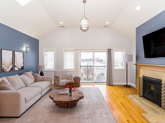 Stunning 2-Bedroom, 2-Bath Top-Floor Condo ~ Priced to Sell! Don't miss out on this beautiful, sunny 2-bedroom, 2-bathroom top-floor unit with incredible features! ~ From the moment you enter, you'll be captivated by the soaring vaulted ceilings and oak hardwood floors that flow throughout the living, dining, and kitchen areas ~ The open and airy space is perfect for entertaining and daily living. The gorgeous kitchen is a chef's dream with 42" maple cabinets, granite countertops, and stainless steel appliances ~ The gas fireplace in the spacious living room creates a cozy atmosphere, while the master suite features a luxurious Jacuzzi tub for ultimate relaxation. Enjoy the abundance of natural light with two skylights, a Juliette balcony in the front, and a large deck in the rear, perfect for outdoor living ~ The in-unit laundry adds convenience, and with two parking spaces included, you'll never have to worry about finding a spot. This condo offers incredible value in a prime location, with low taxes and assessments and a price that's truly priced to sell! A must-see! Some photos are virtually staged~Listing Agent related to seller.