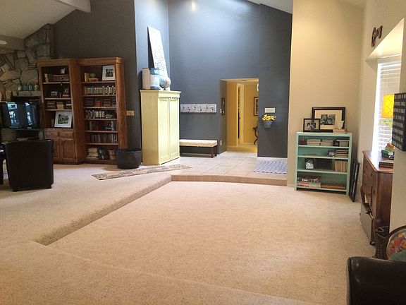 You will fall in love when you step in to this beautiful retreat in northwest Bakersfield. It offers a huge open living area, and a floor to ceiling rock fireplace, and a cute kitchen with a large nook. There are a total of four bedrooms, three full baths and a half bath. The master bedroom and two of the other good sized bedrooms are in one wing and there is a fourth large bedroom with its own private bath in the other wing. The huge back yard is fabulous with a free form pool, lush landscaping, and a large covered patio.