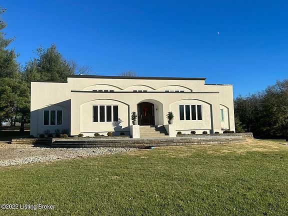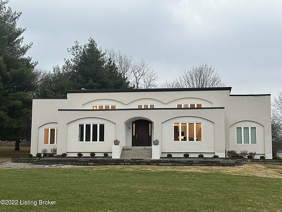 Stunning 4/2-bath custom-remodeled home in the Briar Hills subdivision of Oldham County, only 20 minutes from downtown Louisville. Enjoy the simple life and tranquility of 1.2 acres of flat, usable land with no HOA. Enter through a massive mahogany wood front door to your foyer into the great room with 14-foot-high planked ceilings. The spacious kitchen features an expansive island, quartz countertops, double ovens, and tons of cabinet storage. Function meets elegance in every room with airy natural light throughout and not an inch of wasted space. You choose an open dining concept and living, or a private dining room with a gas fireplace—many layout possibilities for various needs. Crown molding is one of many exceptional features, with large bedrooms, beautiful windows, heated tile floor, steam shower, and a massive 1200 sq foot patio for outdoor living. The owner/builder/designer wanted to create a private getaway in the master suite across the one-story ranch. A master bath sanctuary with a soak-in tub or walk onto river rock in an oversized shower with dual shower heads, quartz countertops, and an LED backlit mirror. Recent additions include complete crawlspace encapsulation with a 20mL vapor barrier and commercial-grade dehumidifier, a new roof on the 4-car garage, and a contract for a new roof on the main home, with a transferable warranty. Peace of mind that the large ticket items are covered so the new owner can move in and experience quintessential Kentucky living.