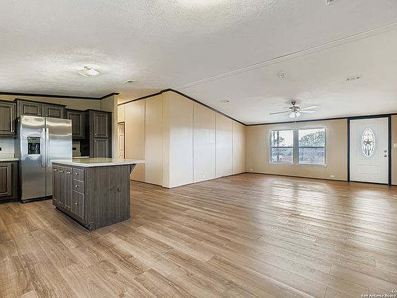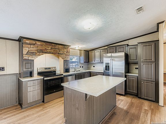 Exceptional Manufactured Home located about 10 minutes away from Calaveras Lake. Home has just been retrofitted. Live in San Antonio with a country feel, on 0.71 acres with NO HOA! 4 bedrooms and 2 bathrooms comfortably nestled in 1664sqft of living space. The home has brand-new stainless-steel appliances (refrigerator, stove and dishwasher), stainless steel sink, new water resistant, vinyl, interlocking flooring in common areas and bathrooms, and fresh new carpet in all 4 bedrooms. Light fixtures were replaced with fans in all the bedrooms. Brand new porch decks in front and in back of the home as well as new, standard size, front and back doors. New skirting around the house with the addition of a water spicket on the front of the house, HVAC and Septic system have been recently serviced. New tin roof on the chicken coop.