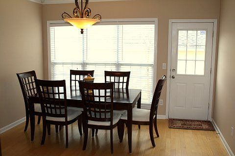 Pretty light filled 2-story end unit! Fenced yard, 2 car garage with storage above, covered front porch, and balcony off master. Open kitchen with granite &stainless appliances, full laundry room, pantry. Separate living room with FP, Master bedroom up w walk in closet, separate guest suite with private bath. Walk to Burger Republic!