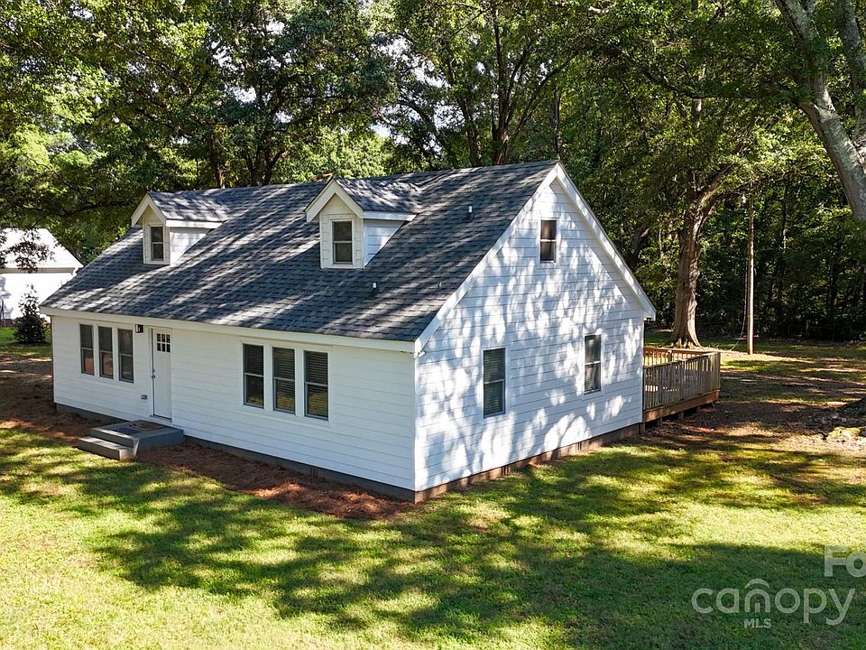 Cottage-style charmer in a storybook setting on shady 1 acre lot in the heart of Huntersville. Unrestricted (NO HOA) lifestyle convenient to I-77 and I-485. Home was renovated by previous owners (upper level was finished adding a bonus/flex room/full bath and that added space of approx. 481 sq. ft. not included in listing’s Sq.Ft. due to the absence of permits). Septic System is for 3 BR. Three very spacious bedrooms on the main including the primary with lovely en suite bath. Open floorplan. Kitchen features wall ovens/island with prep sink, tons of counter space, lots of cabinetry, and pantry. Dining room is open to Kitchen and Living Room. Large laundry room. LVP Flooring on the main level. Freshly painted interior. New carpeting on upper level. Amazing rear deck overlooks the backyard and horseshoe driveway bordered by stately shade trees. Charming covered side porch. Very close to the location of the future home of Phoenix Montessori School. Move-in READY!