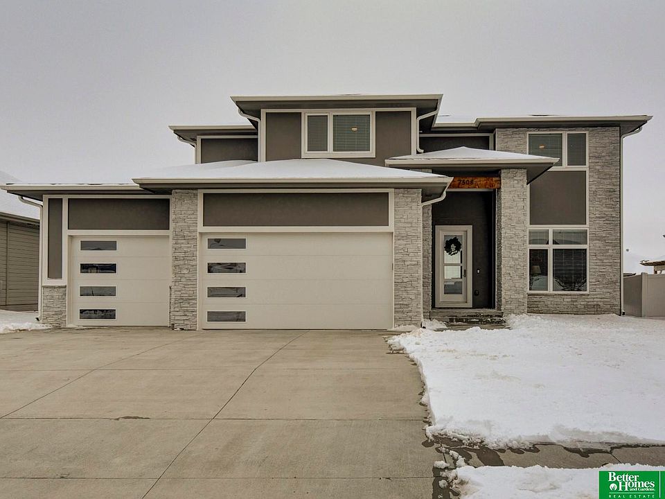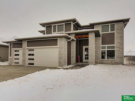 Impressive and modern two-story home easily walkable to Bennington Schools’s Anchor Pointe Elementary and neighborhood swimming pool. Contemporary glass front door, windowed garage doors, stacked stone pillars, and cedar accent provides striking curb appeal. Soaring entryway with nearly 20 ft ceiling! 10 ft ceilings throughout main floor paired with large windows make this home incredibly bright. Spacious living room with floor-to-ceiling stone fireplace and built-in cabinetry with floating shelves. Open kitchen has granite countertops, center island, SS appliances, and generous walk-in pantry. Drop zone with bench, cabinetry, and shelving located next to FOUR car garage! Four comfortable bedrooms on second floor with tiled laundry room and THREE full baths! Primary bedroom ensuite with walk-in closet and large linen closet. Unfinished basement has egress window for 5th bedroom. Covered patio and flat backyard.