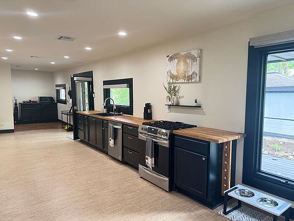 This recently remodeled, 3-bedroom, 2-and-a-half bath home is situated in the inviting Southridge Estates neighborhood near 71st St. and Yale Ave, part of the Jenks Public Schools District. The large driveway and detached garage provide for plenty of parking. A new bridge/walkway and spacious deck overhanging a stream through the property and spanning the length of the home provides a unique entrance and great space to relax or dine outdoors. Also enjoy the large yard for entertaining or pets. Set back off the street, this home provides plenty of peace and quiet. Freshly painted, this home includes new cork tile flooring in the living areas with new hardwood floor and tile throughout the rest of the home. With an open-concept kitchen, dining and living area, ample lighting and large windows create a bright space. The kitchen includes new cabinetry and countertops, ebony-stained open shelving, and new, stainless steel appliances, including a gas stove, refrigerator and washer and dryer. In the living room, the previous fireplace was repurposed as a distinctive entertainment console with a newly tiled hearth/base and open ebony-stained shelving on each side - pulling in the design/colors from the kitchen to unify the space. Three bedrooms occupy the other end of the home. The master includes a large walk-in closet and a private bathroom with a walk-in tiled shower and a single-sink vanity. The second bathroom with a spacious walk-in shower and double-sink vanity is shared by the other two bedrooms. Utilities * All at tenants responsibility - we do provide pest control free of charge. Pet-Friendly Bring your furry friends! Pets are welcome with an application, a refundable $250 pet deposit, and $25/month per pet of pet rent. This home is rent ready, and we'd love to schedule a tour today!