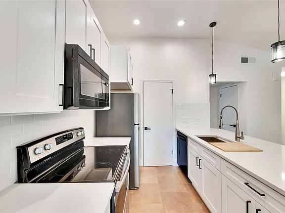 Updated 2 bedroom, 1 bathroom half duplex / condo with private back yard, 1 car garage, and vaulted ceilings. Situated on a quiet cul-de-sac, but conveniently located close to everything at Brodie Lane and William Cannon near HEB. Updated appliances. Bright white kitchen with quartz countertops. Master bedroom includes walk in closet and has plank flooring. Efficient HVAC unit. Private back yard with newly installed patio that backs up to tree filled green space. Only a couple of minutes away from MOPAC with multiple shops, restaurants and entertainment options including WHOLE FOODS, COSTCO, HEB, CHUYS, FIVE GUYS, TORCHYS TACOS and Golds Gym and Lifetime Fitness. DOWNTOWN, Barton Creek Mall, and Barton Creek GREENBELT minutes away. Longview Park and Sunset Valley local trails are walking distance! Also includes attached 1 CAR GARAGE and LAUNDRY ROOM. Tenant responsible for utilities
