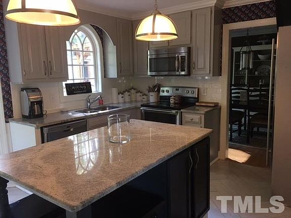 Showings start 5pm Sunday! North Raleigh, Midtown location. Walk to neighborhood lakes, community pool, local dining & more! 5 bedrooms + bonus. Remodeled kitchen w/ new center island, granite, stainless steel appliances incl SubZero refrigerator. 3 remodeled bathrooms. Flexible floor plan with 3 bedrooms down & 2 up. Large closets. Fenced yard with large out building, basketball court and additional storage shed. (More photos on Monday/Tuesday.)