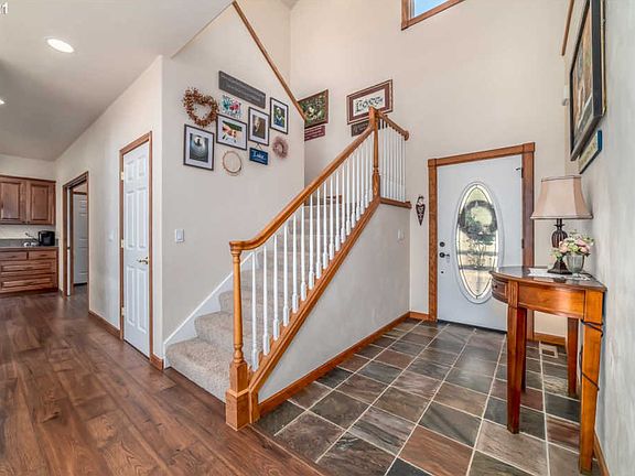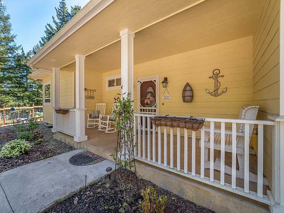 Private, beautiful country setting across from the lake & not far from town & freeway access! Home features lots of natural light, cherry cabinets, granite counters, propane range, wiring for generator, lg utility rm w/ office area, bonus room rm originally planned as apartment w/ dedicated power & slider, master suite w/ double W-I closets, beautiful patio & gardens w/ raised beds, 4 zone sprinkler system, potential for pasture area, RV parking w/ all hookups & deck. Don't miss it!