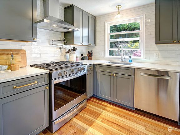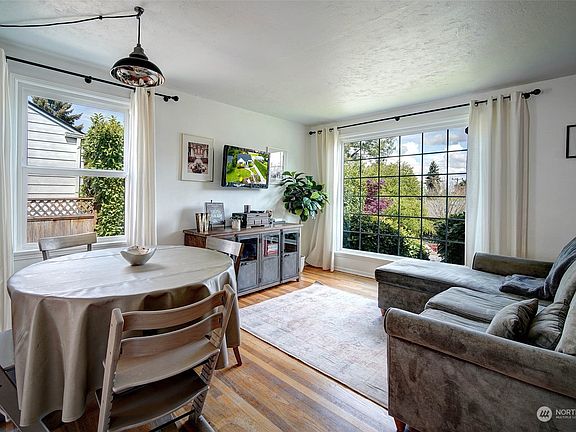 Enjoy the sunrise over the Cascades from this lovely 4+ bed 1.75 bath home. Lovingly cared for, there has been so many updates to combine modern living with vintage charm. Updgrades include the roof, electrical panel with upgraded service, windows, kitchen and baths, furnace and A/C, and more! 2 bedrooms up, 2 bedrooms on the main floor, lower bonus room with an attached bathroom could serve as a 5th bedroom, guest suite or office. Large lower family room with wet bar. Updated laundry room with sink. Lovely, fully-fenced and terraced back yard. Garage and plenty off-street parking. Utilize the alley for more parking or a possible view DADU. Mere blocks from coffee shops, restaurants, library, and parks. Welcome Home.
