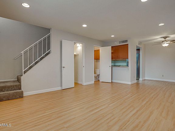 **AFFORDABLE LIVING** INSIDE YOU'LL FIND A REMODELED KITCHEN WITH NEWER CABINETS, GRANITE C/TOPS, STAINLESS APPLIANCES AND BREAKFAST BAR, WOOD LAMINATE + TILE FLOORING, INSIDE LAUNDRY, NEWER DUAL-PANE WINDOWS INCLUDING SLIDER TO PATIO, RECESSED CAN LIGHTING, LARGE CLOSET UNDERNEATH STAIRS, HALF BATH DOWNSTAIRS AND MORE. OUTSIDE YOU'LL FIND A RING DOORBELL (STAYS), SECURITY SCREEN DOOR AND STORAGE ROOM OFF THE PATIO AREA, WHICH ALSO HAS BLOCK FENCING. REFRIGERATOR, WASHER & DRYER ALL STAY TOO! COMMUNITY POOL AND DESIGNATED AREA FOR USE DURING PARTIES & GATHERINGS. LOCATION IS CONVENIENT TO DOWNTOWN AND NOT FAR FROM FREEWAYS OR GRAND AVENUE. COMPLEX ALSO HAS HAD RECENT FHA CLOSINGS SO IS OPEN TO ALL FORMS OF FINANCING IT APPEARS. SCHEDULE TO VIEW TODAY!