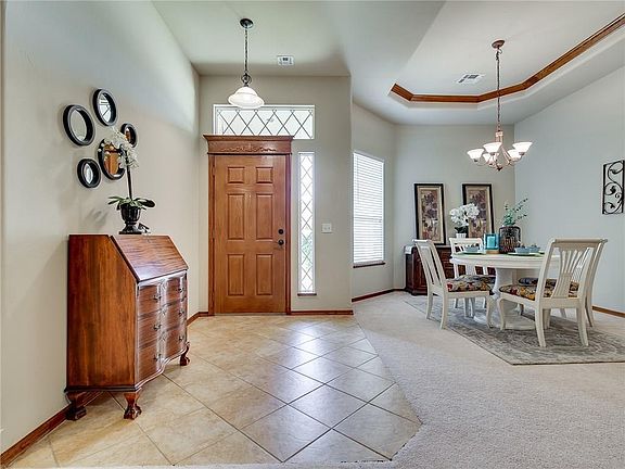 This lovely and spacious well laid out home has 2 living areas, 2 dining areas, an electric fireplace, and high ceilings throughout. Santa Fe style architectural angles, neutral colors, and sensor dawn-to-dusk exterior lighting, ZERO steps to the front or back door! Huge office with built-in bookshelves, built-in desk, a closet, and a door to the patio. The lovely kitchen offers granite tile counter tops, delta Touch20 faucet, under cabinet lighting, stainless sink, stainless cabinet depth fridge, a breakfast bar and huge walk in pantry. BRAND NEW WATER HEATER, built in workbench and shelving in garage. The oversized laundry room has cabinet space and a Manabloc centralized water distribution and shut off system. The master has a recessed ceiling, walk in closet with built-in shelves and a door to the patio. The master bath offers jetted tub, a step in shower, new tiling work as well as double vanities. Neighborhood playground with brand new equipment and pool!