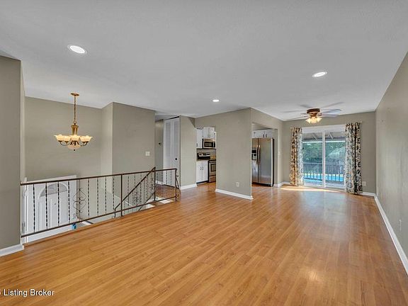 living space. Step inside to a bright living room with recessed lighting, a kitchen featuring