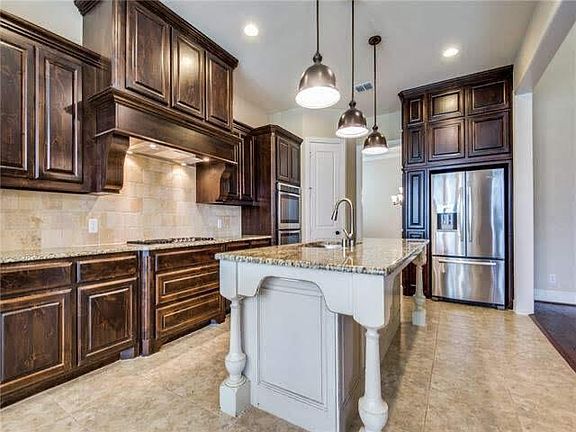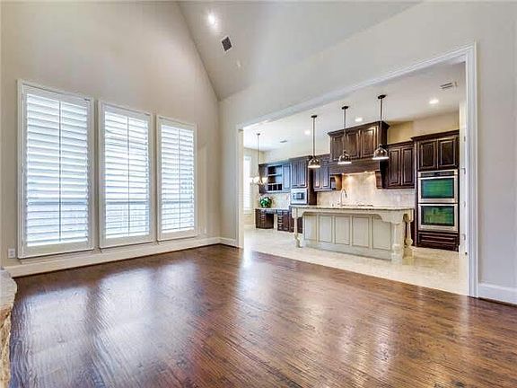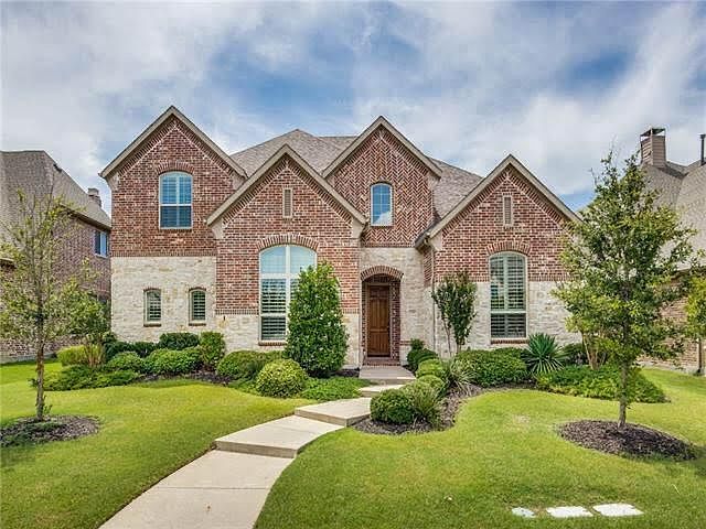 This beautiful Highland Home sits among lush landscaping in highly sought after area with Frisco schools. Handsome hand-scraped wood floors and Plantation shutters enhance the open floor plan. The delightful kitchen with counter height island-bar, double ovens, gas cooktop, planning desk and walk-in pantry over looks the gorgeous family room w a stone fireplace and hearth. Private study and master suite downstairs. Master bath features a 6' shower, soaking tub and his and her vanities. Upstairs offers gamerm with dry bar and refrig, media rm, 2 bedrms with a Jack n Jill bath and the 4th bedrm has full bath access. Large utility rm. Excellent storage. Covered patio. Tandem garage. Community pool and playground!