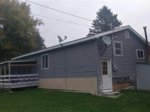 Well taken care of ranch home situated in the country on 2.45 acres; Minutes from the village. Come home to comfortable living with 3 beds and one bath home. Partial basement along with the out buildings will help you store everything from toys to garden tools to ATV's and more. Yard has a beautiful view out into the acres that surround the home. Roads leading in offer a scenic drive up to the house. County tax site does not reflect the current size of home - is now a ranch of 960ft not a mobile of 480ft
