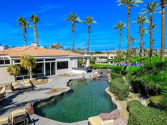 Dramatically detailed & uniquely upgraded golf course home located right on the green fairway with breathtaking mountain views beyond! Sophisticated style throughout this charming home with numerous custom-quality touches, warm tones and creative uses of tile, granite and stone. Highlights of this immaculate entertaining home include soaring ceilings, gleaming tile floors and views that bring the outside in through expansive picture windows. Open great room with stately fireplace & gourmet kitchen to please the most discerning chef with stainless steel appliances and rich wood cabinetry. Master Suite is a private retreat with walk-in closet, luxurious spa-style bath and views revealed through the sliders and windows. Enjoy the Entertainer's dream patio with Views, a pool and spa. Dramatic landscape lighting sets the tone for the cool and romantic Desert nights to come.