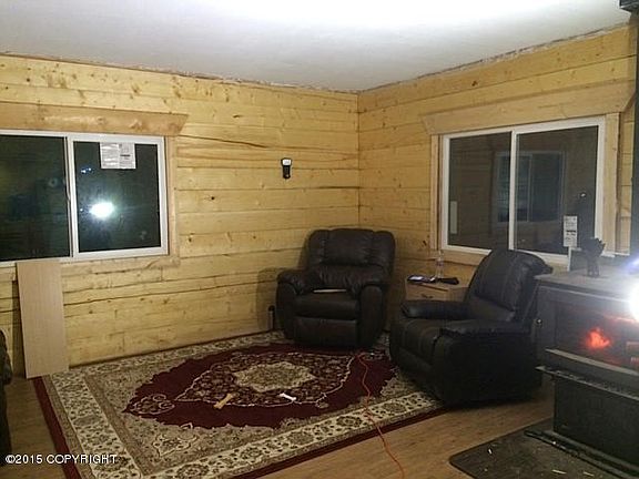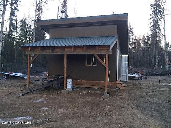 new 20' by 24' log cabin on Kelly Creek,arctic entry is 8' by 8',new bathroom is 12' by 12',covered porch is 8' by 12', foundation is ''helical piers'',new propane ranch and propane fridge,living room, bedroom, kitchen,there is also a workshop 14' by 16' with loft, quality construction,6.5 miles north of Talkeetna, 30 min. with a 4-wheeler,new bathroom is 10' by 12', inverter & batteries added Honda 2000 W generator and some tools included,