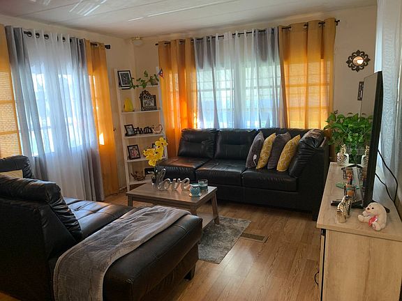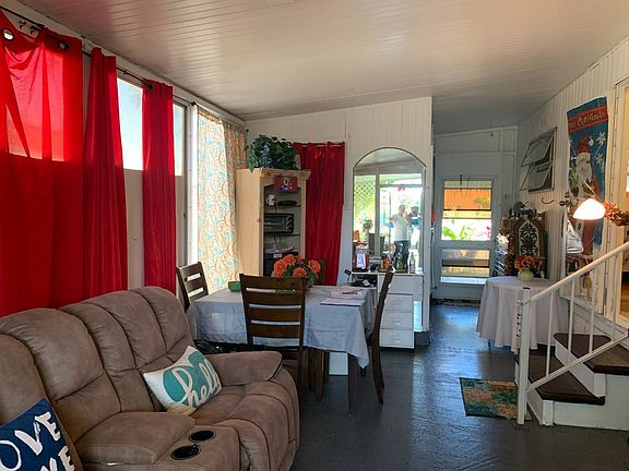 This is a mobile home for sale in a 55+ community on a rented/leased lot. Check out this 1BR/1BA mobile home with a separate 1BR/1BA in-law or guest suite. There is custom paint, laminate flooring throughout and many upgrades. It is in great condition with a front and back patio! The front side set patio is 10 x 12; perfect for watching the world go by. There is a 10 x 24 side set vinyl/screened lanai with a tile floor. The shed inside the lanai houses the washer/dryer (included in the sale). The eat in kitchen has been updated with painted cabinets. There is ample storage and a food pantry. The adjacent living room has laminate floors. The bedroom has laminate floors, a ceiling fan and two closets. The hall bath has tile flooring, upgraded single sink vanity and a shower/tub combination. There is a patio area in the backyard overlooking a canal for sunning and grilling! The in-law or guest suite has a private entrance and a bathroom en suite. The bathroom has ceramic plank tile, single sink vanity and a walk in shower. There is a glass block wall providing for providing additional light. The lot rent is $652 and includes trash and the community amenities below. Palm Bay is a 55+ community with a club house and pool.... Palm Bay is close to shopping and outdoor dining on the Manatee River. It is only minutes away from the great Gulf beaches.. Florida MH Sales, LLC cannot guarantee or warrant the accuracy of this information, measurements or condition of any property. Measurements are approximate. Lot rent is subject to change.