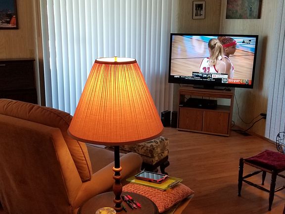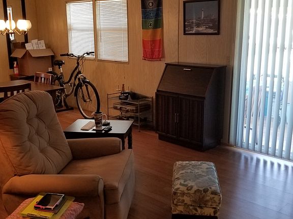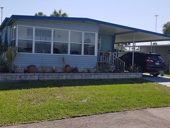751 10th St. E, Lot 313 Palmetto, Florida 34221 Palm Bay Mobile RV and Mobile Park, This home is on a rented/lease lot and is in a 55+ community. This 2BR/2BA, with an enclosed front-set lanai is move-in ready! It comes fully furnished and turnkey!. It is in very good condition. The home comes with central AC and laminate flooring throughout. There is a 2-car carport and a outdoor storage shed. This model home has a covered front entrance porch. The 10'x18 lanai is enclosed with glass windows. The galley kitchen has fresh custom painted cabinets and a pantry. It comes with a stove and refrigerator ready to use. The separate dining area has laminent and mini blinds. The living room has laminent, custom paint, and vertical blinds. The hall bath has custom paint and comes with a shower/tub combo and a single sink vanity. Bedrooms 1 and 2 have laminent flooring and a closet. Bedroom 2 has an ensuite master bath that has a walk-in shower and single sink vanity. The lot rent is $687 and includes a clubhouse and a pool. A small price to pay to live in Paradise! Palm Bay MH & RV Park is conveniently located in Palmetto, FL within walking distance of shopping, dining, and other services. There is a large social calendar. This home is minutes away from the great Gulf beaches! Florida MH Sales, LLC cannot guarantee or warrant the accuracy of this information, measurements, or condition of any property. The measurements are approximate, and the lot rent is subject to change. 2BR/2BA! Updated Flooring! Custom Paint!