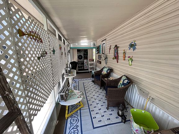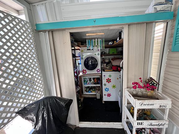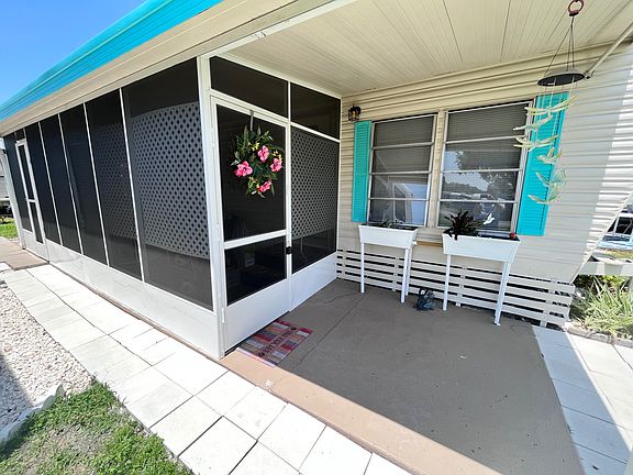 751 10th St. E, Lot 39 Palm Bay Mobile RV and Mobile Park, Palmetto, Florida 34221 This home is on a rented/lease lot and is in a 55+ community. This is a very clean 1BR/1BA, with an enclosed 7'x21' lanai. This adorable beach cottage is move-in ready today!! It comes partially furnished and turnkey. The main home has laminate flooring throughout. It comes with plenty of storage space insides an out. There are laundry hookups (washer/dryer included are in the sale) in the lanai. There are two additional exterior sheds. The exterior has fresh new paint! The entrance to the home has a 6' x 6' covered sitting area/porch. The 7' x 21' lanai is fully screened with painted concrete floor. There is privacy lattice on the screens, all the way around the lanai. The eat-in kitchen has breakfast bar seating for two, custom paint and comes with a stove, refrigerator and pantry storage. The living room has custom built-in shelves, a ceiling fan, mini blinds and curtains The passthrough bath has a newer separate walk-in shower insert, a single sink vanity and cabinets for extra storage. The bedroom has a closet, custom paint, and mini blinds. The lot rent is $530 and includes water, sewer, trash and lawn plus the clubhouse and a pool! A small price to pay to live in Paradise! Palm Bay MH & RV Park is conveniently located in Palmetto, FL within walking distance of shopping, dining and other services. There is a large social calendar. This home is minutes away from the great Gulf beaches Florida MH Sales, LLC cannot guarantee or warrant the accuracy of this information, measurements, or condition of any property. Measurements are approximate. All homes are sold "as is" and personal or professional inspection is encouraged. Lot rent is set by the community and is subject to change. All buyers must be approved by the community prior to closing on a negotiated sales contract