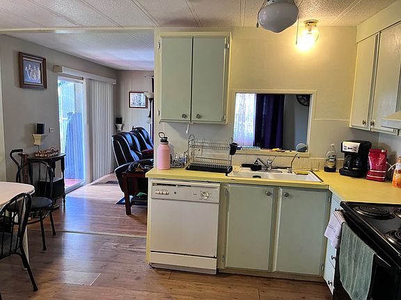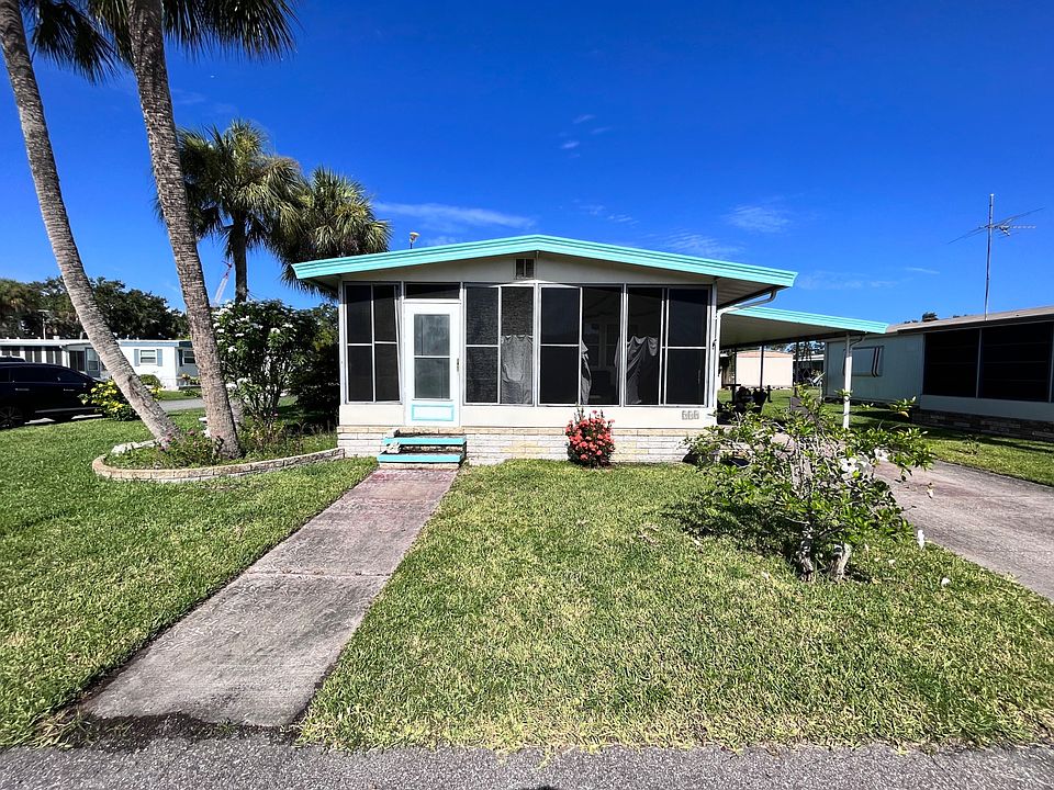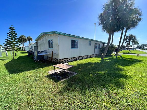 751 10th St. E, Lot 518 Palmetto, Florida 34221 Palm Bay Mobile RV and Mobile Park (55+ Community) This home is on a rented/lease lot This 2BR/2BA, with an enclosed front-set lanai is move-in ready! It comes partially furnished and turnkey. The home comes with 2018 central AC and laminate flooring on all floors (except Master Bedroom and hall bath). The home is situated on a corner lot with plenty of yard between homes and the street. There is a large 2-car carport and an outdoor storage shed with washer/dryer hookups. The Washer/Dryer is included in the sale. The front-set 10'x24' lanai is enclosed with vinyl windows. The eat-in kitchen has and a stainless refrigerator/freezer. There is also an oven/stove, a dishwasher and a microwave included in the sale. There is plenty of storage and a separate shelved pantry The separate living room area has laminent, a ceiling fan, and grommet tab drapes. The hall bath has vinyl flooring laminate flooring. There is a single sink vanity and a shower/tub combo. The Master Bedroom has carpet flooring, drapes, a ceiling fan, and a walk-in closet. There is also an en-suite bath that has a single sink vanity and a separate walk-in shower. The 2nd Bedroom has laminate flooring, mini blinds, a ceiling fan, and a walk-in closet. The lot rent is $695 and includes a clubhouse and a pool. A small price to pay to live in Paradise! Palm Bay MH & RV Park is conveniently located in Palmetto, FL within walking distance of shopping, dining, and other services. There is a large social calendar. This home is minutes away from the great Gulf beaches! Florida MH Sales, LLC cannot guarantee or warrant the accuracy of this information, measurements, or condition of any property. Measurements are approximate. All homes are sold "as is" and personal or professional inspection is encouraged. Lot rent is set by the community and is subject to change. All buyers must be approved by the community prior to closing on a negotiated sales contract