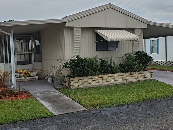 This is a mobile home for sale in a 55+ community on a rented/leased lot. Check out this updated, light and bright 2BR/2BA mobile home being sold unfurnished. It has vaulted ceilings, custom paint and there is laminate and vinyl flooring in all the right places. The kitchen has laminate flooring and ample storage. There is an eat in area. The living room has laminate flooring, custom paint and panel walls. The master bedroom has laminate flooring, panel walls and a master bath en suite. There is a single sink vanity and a walk in shower in the master bath. The hall bedroom has laminate flooring, panel walls and a built in. The hall bathroom has a single sink vanity and a shower/tub combination. There is a shed for additional storage and the washer/dryer hook ups. The lot rent is $621 and includes a clubhouse and a pool. A small price to pay to live in Paradise! Palm Bay MH & RV Park is conveniently located in Palmetto, FL within walking distance of shopping, dining and other services. This home is minutes away from the great Gulf beaches!