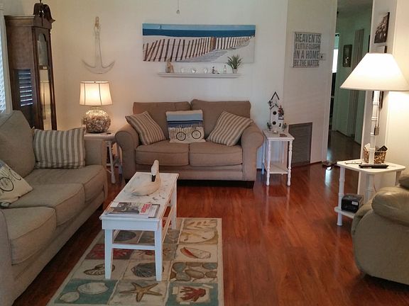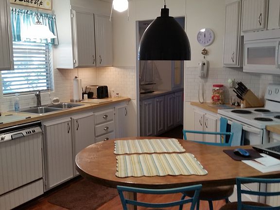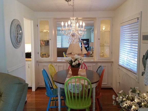 This gorgeous mobile home has been totally updated it is in Palm Bay Mobile Home Park has a pool ,,shuffleboard and Clubhouse. The park is in Palmetto Florida and is located to where you can walk to five to ten restaurant. Banks ,,shopping you would not have to have a car. There is a Walmart across the street an aldies at the front of the park and a detwiler's a quarter mile down the road. The park is smaller but very clean and neat and the people are very friendly. The home itself has laminate flooring throughout. Central air large shed a super cute private patio on the back. Walk-in closet in the master bedroom and master bathroom.. the second bedroom is in office now but large enough to accommodate a queen size bed and dresser comfortably. There are also ceiling fans in every room. there are so many extras on this home , it is hard to list them all. A must-see. There is an application for the park that has a fee. Lot rent is 554.50 only 20 minutes to the beach and beautiful Anna Maria Island .This is a 55+ park