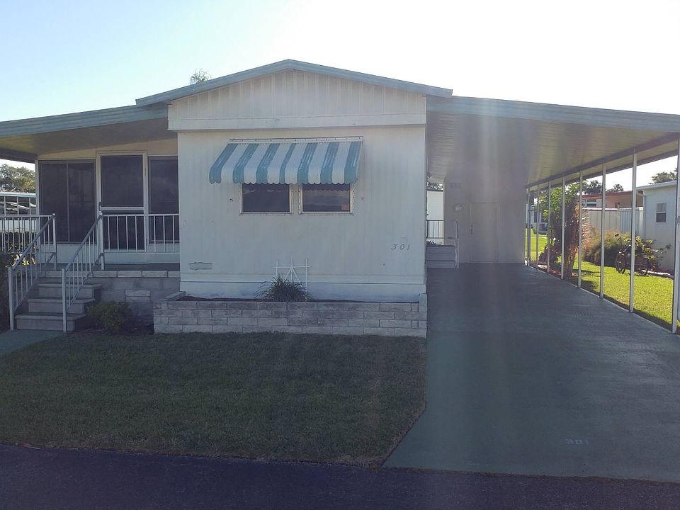 This home is turn-key ready...just bring your toothbrush !!! Comes furnished with all the appliances, it has new sub-flooring with ceramic tile and laminate flooring throughout. Home has nice screened in lanai and long driveway for plenty of parking. The home has been very well kept and owner has kept up on necessary repairs. The home is located on a spacious corner lot in a quiet 55+ community with a nice clubhouse with lots of activities and swimming pool and rec area. The park is very active with lots of social events and is within walking distance to shopping and restaurants. Very nice home and a must see. Call Stephen