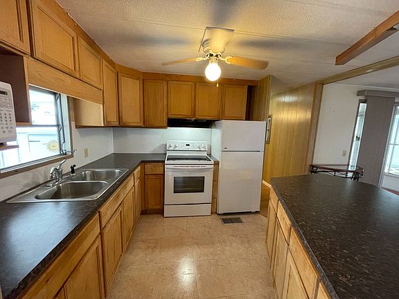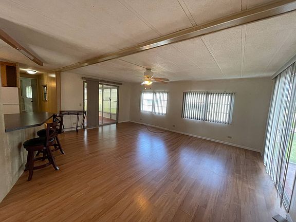 This is a mobile home for sale in a 55+ community on a rented/leased lot. This is a light, bright 1BR/1BA double wide mobile home with a front set and back set lanai. The sale includes transferrable termite and home warranties. The updated kitchen has vinyl flooring, upgraded counter tops and a pass through bar and buffet. It is an open floor plan with a formal dining and living area. The living and dining areas have laminate flooring and vertical blinds. There are two sliding glass doors to the screened lanais, one to the front of the home (6 x 12) and one to the rear (10 x 12). There are washer/dryer hookups (washer/dryer not included in the sale) on the back lanai. The bedroom has laminate flooring, custom paint, three closets, a built in and panel walls. The hall bath has a dual single sink vanity, vinyl flooring, upgraded counter tops and a shower/tub combination. There is a carport for housing up to two cars, tandem style. There is a shed for additional storage. The lot rent is $652 and includes a clubhouse and a pool. A small price to pay to live in Paradise! Florida MH Sales, LLC cannot guarantee or warrant the accuracy of this information, measurements or condition of any property. The measurements are approximate and the lot rent is subject to change. Palm Bay MH & RV Park is conveniently located in Palmetto, FL within walking distance of shopping, dining and other services. This home is minutes away from the great Gulf beaches!