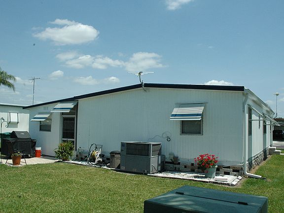 51 10th St. E, Lot 414 This Mobile home is on a rent/lease lot and is in a 55+ community This 2BR/2BA with a screened lanai is move-in ready. This home is fully furnished as shown in photos. Lots of updates with beautiful laminate flooring. It is close to lots of shopping and outdoor dinning on Manatee river. Numerous updates include; a membrane TPO roof, Laminate flooring, Kitchen custom paint and sink fixtures, upgraded bath counter tops, new custom color paint throughout. The eat in galley kitchen has custom paint, newer fixtures and laminate There are laminate floors in the kitchen, living, and dining areas. Carpet on the bedrooms. There is a single car carport. There is a shed for additional storage. There are washer/dryer hookups (washer/dryer included in the sale) in the shed. The lot rent is $652 and includes a clubhouse and a pool. A small price to pay to live in Paradise! Palm Bay MH & RV Park is conveniently located in Palmetto, FL within walking distance of shopping, dining and other services. This home is minutes away from the great Gulf beaches! Florida MH Sales, LLC cannot guarantee or warrant the accuracy of this information, measurements or condition of any property. The measurements are approximate and the lot rent is subject to change.