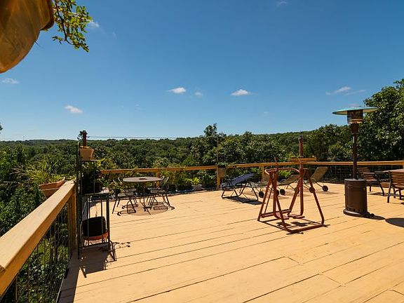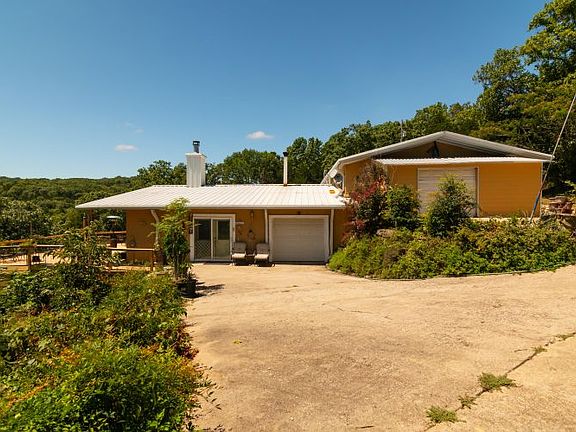 CALLING ALL HOMESTEADERS! This unique property on 5 acres has the ''Out of town'' feel, while being only minutes from all of the shops and restaurants on Branson Hills Parkway. Built by the owners in 2007, this property is constructed out of ICF (Insulated Concrete Form) walls that are over 12 inches thick! This home is very well insulated, with central air, Heat pump, and ducted wood stove located in 1 car garage (Get all the heat without the wood burning smell). The main home has 2 beds and 2 baths. Up the stairs off of the dining room, is the attached apartment, with 2 beds and 1 bath. across the hall from the apartment, is the 2 car garage, that is heated and cooled, and has been converted into a music studio with a kitchenette and half bath (can easily be converted back to garage). Property includes a 30x30 deck, a 24x24 barn, and a 15x30 greenhouse, Fenced in chicken run on over 1 2 acre with 2 chicken houses and small 2 story barn (Chickens can be included), Plenty of Elderberry and Fig trees, Mint, Oregano, and much more! There is also a year round running creek at the bottom of the property.