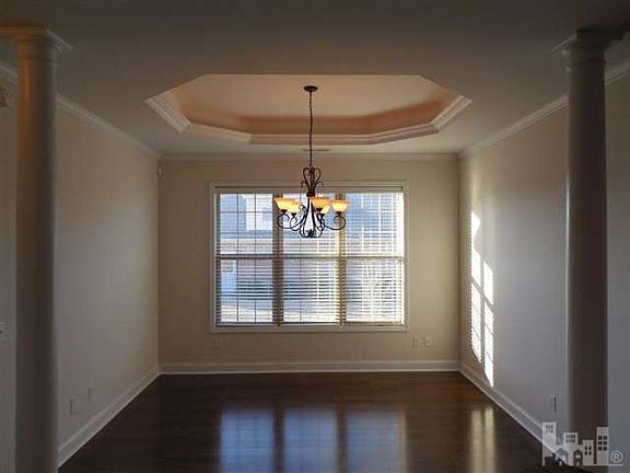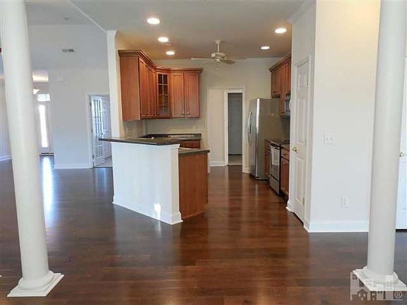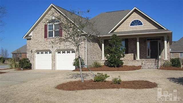 Stately 4 bedroom brick home in immaculate condition. Gleaming hardwood flooring greats you in the foyer & flows throughout the main living areas of this open floor plan home. The welcoming living room boasts a corner gas fireplace w/ an elegant mantle while the exquisite kitchen has stainless appliances, recessed lights, built-in microwave, & a breakfast bar. Entertain in the formal dining room complete with a trey ceiling, beautiful chandelier, & defining columns. The spa-like master suite has a trey ceiling also along with 2 walk-in closets and its own bathroom w/ dual vanities, a garden tub, & separate shower. All the bedrooms have brand new plush carpet. 4th bedroom currently used as an office. Unwind on the rocking chair front porch or in the enclosed all-season sunroom with its big windows w/ both pond & golf course views. Additional features include crown molding, ceiling fans, 2 car garage, & ideally located on corner lot. Community pool, tennis, golf, & clubhouse available.