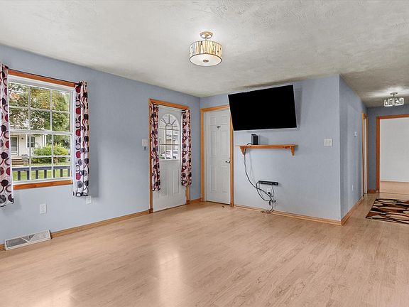 Welcome home to one floor living. This 1/2 acre ranch home provides a ramp to the front door with 3 bedrooms and 1 full bath. You'll enjoy the large maple kitchen with ample room, plenty of cupboard space, stainless steel appliances and granite counter tops. Living room, kitchen and hallway have wood laminate flooring. The basement is partially finished with outside access. Home has plenty of parking with the circular driveway.