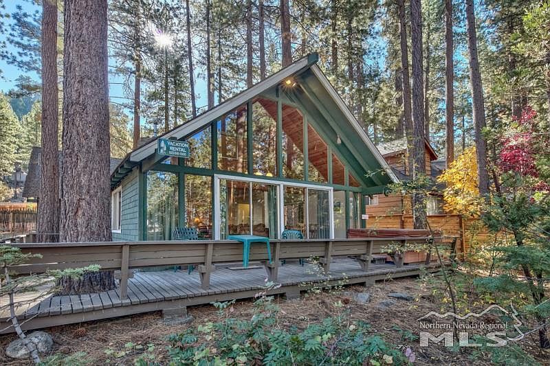Classic squared log cabin walking distance to the beach located next to Zephyr cove resort. A perfectly positioned cabin with filtered lakeviews, easy walk to the private beach, community pier, and buoy field. Enjoy epic sunsets from this quaint cabin by the lake! Four bedrooms with two baths, great views from the deck and hot tub ready to go vacation home!
