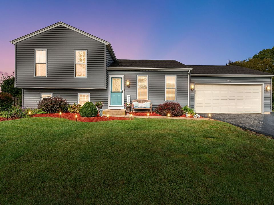 Beautifully remodeled and updated home features 3 bedrooms, 1 1/2 bathrooms an open concept first floor all on a stunning, premium fully fenced lot that backs to a natural open space. Be home for the holidays to enjoy the open concept main living area with laminate flooring and slat blinds, a large living room and a totally remodeled kitchen with 42" espresso cabinets, granite counter tops, all stainless-steel appliances and a large island with seating area. No walls to block the view of the gorgeous yard and large deck. The spacious family room on the lower level has new carpet (2025), slat blinds on the windows, wainscoting and crown molding. This lower level has the 3rd bedroom, currently being used as an office and a beautiful half bathroom. The utility room is also on this level. Upstairs you will find 2 spacious bedrooms. The master bedroom has a walk-in closet and an entrance into the main bathroom. Carpet on this level installed 2024. Top rated school District 25 and lots of parks nearby.