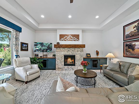 Welcome home to your peaceful escape nestled within the highly desirable Mariana Butte golf course community. Step inside and experience the inviting ambiance of this thoughtfully crafted home. With three well-appointed bedrooms, each featuring its own private ensuite bathroom, you'll find plenty of space to unwind and recharge. This tastefully designed residence rests on a spacious .29-acre lot, offering a perfect blend of comfort and outdoor charm. The well-equipped kitchen, complete with modern appliances and ample storage, makes cooking a breeze. Enjoy meals in the dining area or soak in natural light from the large windows while gazing at the picturesque surroundings. Relax in the cozy living room, complete with a fireplace, creating a warm and welcoming atmosphere for quality time with loved ones. Step through sliding glass doors and be embraced by a backyard paradise, where meticulously manicured grounds provide a picturesque backdrop for outdoor entertaining or simply unwinding in tranquility. After a long day escape in your very own serene spa retreat within the comfort of your own home. The primary bedroom in this exquisite residence offers an inviting sanctuary, designed for relaxation and unwinding. Nestled in a prime location, this haven is just a stone's throw away from the breathtaking Rocky Mountains, Devil's Backbone and the enchanting Estes Park, offering an array of outdoor activities and adventures to explore. Luxury living meets nature's wonder in this Mariana Butte gem, where the community's amenities and lush landscapes harmoniously complement the nearby natural wonders. Embrace the opportunity to make this dream retreat your very own. Schedule a private tour today! Your serene retreat awaits!